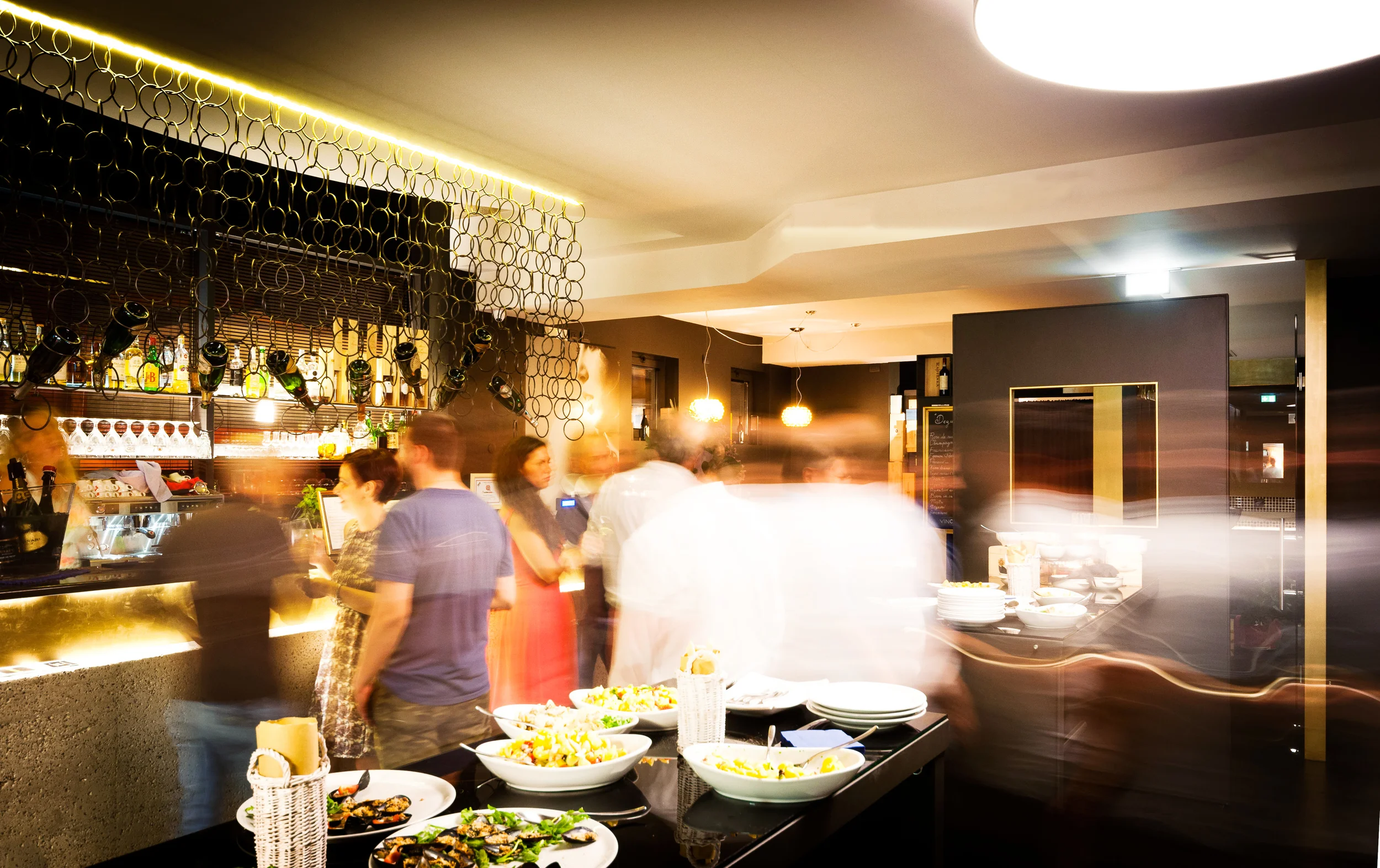 Raffinatezza ed eleganza sono protagoniste nella sala Vincantiamo. Situata al primo piano con una capienza di 100 persone, è spaziosa ma allo stesso tempo accogliente. L’armoniosa combinazione di luci e materiali regala agli ospiti tavoli intimi e appartati.